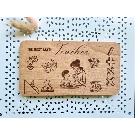 The Best Math Teacher Wooden Breakfast Board Show your appreciation for your favorite math teacher with our beautifully crafted wooden breakfast board, engraved with "The Best Math Teacher." This charming and practical gift is perfect for any teacher who loves to start their day with a smile. **Why It's Special:** - **Thoughtful Design:** Made from high-quality wood, this breakfast board features a smooth finish and a sturdy build, perfect for daily use. - **Unique Engraving:** The "Best Math Teacher" engraving adds a personal touch, making it a unique and memorable gift. - **Practical and Versatile:** Ideal for serving breakfast, snacks, or even as a small cutting board. **Perfect for Any Occasion:** - **Teacher Appreciation Day:** Show your gratitude for their hard work and dedication. - **End of School Year:** A heartfelt way to say thank you and goodbye. - **Christmas or Holiday Gift:** Spread some holiday cheer with this thoughtful present. - **Birthday Surprise:** Celebrate your teacher's special day with a gift they’ll love and use. - **Graduation or Farewell Gift:** A perfect keepsake for a teacher who made a difference in your academic journey. Our wooden breakfast board can be personalized to celebrate teachers of ANY subject. Whether it's for the best math teacher, an inspiring English teacher, or a dedicated science teacher, we can customize the engraving to suit your needs. Simply get in contact with us, and we'll work with you to create a unique and meaningful gift that reflects the special bond you share with your teacher. Make any occasion extra special with a personalized touch that shows your appreciation and admiration. **Dimensions:** - 22 cm x 12 cm **Care Instructions:** - Please clean this board by hand; avoid using a washing machine. **Customization:** - You can have your teacher’s name engraved on the back of the board. Please send us a message to discuss the details.